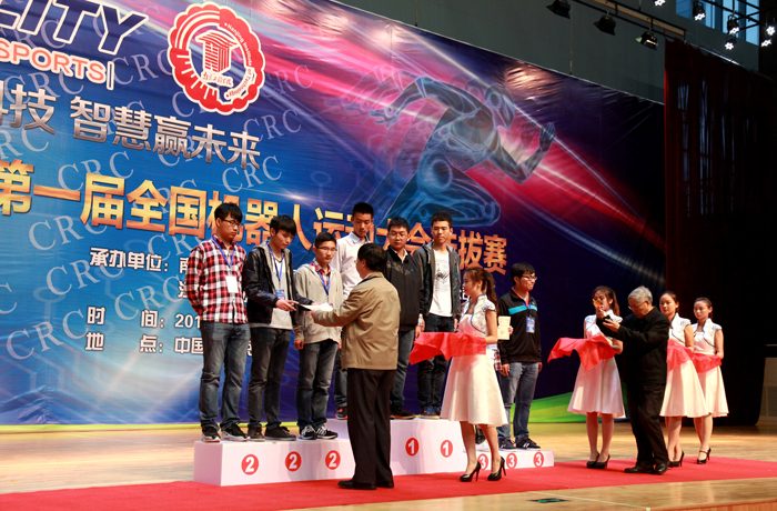 比赛在我校体育中心举行,开幕式由郑锋副院长主持,孙玉坤院长致欢迎词。国家体育总局社会体育指导中心副主任、中国机器人运动工作委员会副主任张怡,中国机器人运动工作委员会执行委员会主任、神州通信集团总经理何晨光教授分别代表国家体育总局体育指导中心、中国机器人运动工作委员会执行委员会致辞。中国自动化学会机器人竞赛工作委员会名誉主席孙增圻教授以及省教育厅、省体育局、省科协、省自动化学会、神州通信集团等单位领导出席了开幕式。开幕式上,我校自编自导的空中机器人队列表演,NAO机器人舞蹈表演精彩纷呈,而机器人平衡车花式队表演更是将开幕式推向高潮。