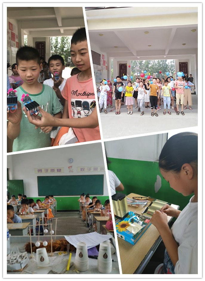 为了培养孩子们的创新意识和想象力,志愿者为玉皇庙小学的孩子们准备了有趣、有料的科学实验课,动动手指,制作如气球飞艇、自制望远镜、太阳能风扇等小物件,不仅传授科学知识,更提升孩子们动脑和动手能力,不局限于已有的科学经验,更打开脑洞畅想“未曾发生的历史”;支教期间,志愿者们为孩子们准备了诸如软笔书法、硬笔书法、经典诗文诵读、国学史学习等特色课程,讲中国故事,读中国文化,强中国自信;志愿者们组织孩子们参观了当地的博物馆与图书馆。在电子沙盘上观看了沛县的历史发展情况,从沛县祖先刀火种的原始生活到刘邦崛起及孔子沛地论道,并从讲解员的讲述中了解沛县的革命先烈在对抗战中所做的牺牲和贡献,让孩子们体悟自己土生土长的这份土地的厚重,激发他们的爱国情怀与强国之心。